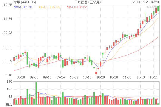 作為世界上股票市值最高的公司,蘋果的市值今天突破了7000億美元,再創(chuàng)歷史新高。蘋果估價(jià)在周二美股開(kāi)盤后上升0 8%至119 59美元,市值7010