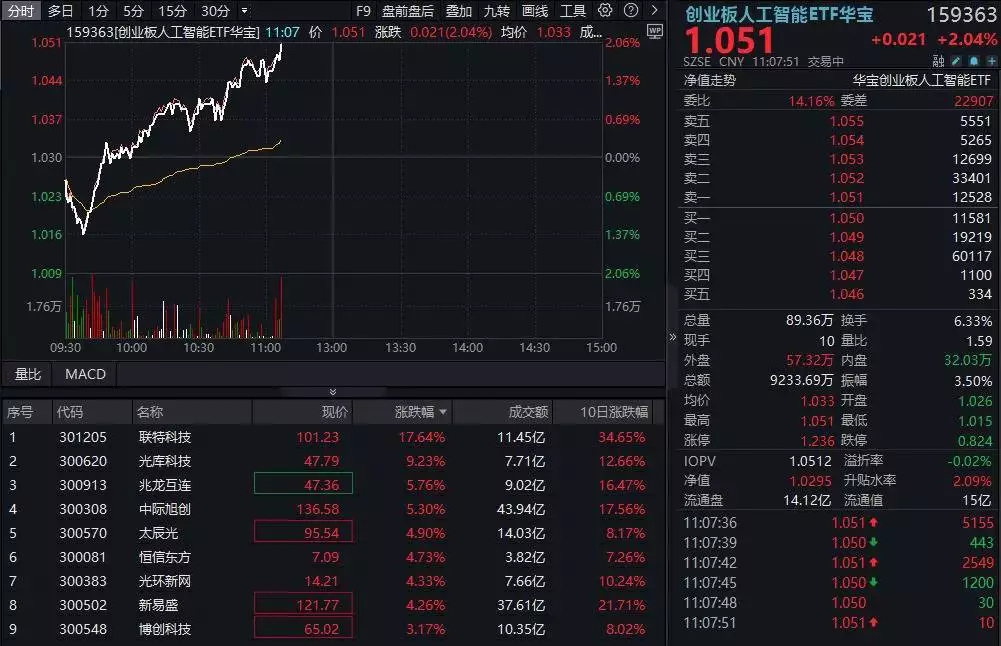 近期人工智能板塊,特別是算力方向的市場表現(xiàn)非常強勁。28日早盤,光模塊等算力方向持續(xù)強勢,高算力含量的創(chuàng)業(yè)板人工智能持續(xù)大漲超2%!